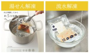 暖かい料理は湯銭・冷たい料理は流水解凍で素材の旨味をそのままに!