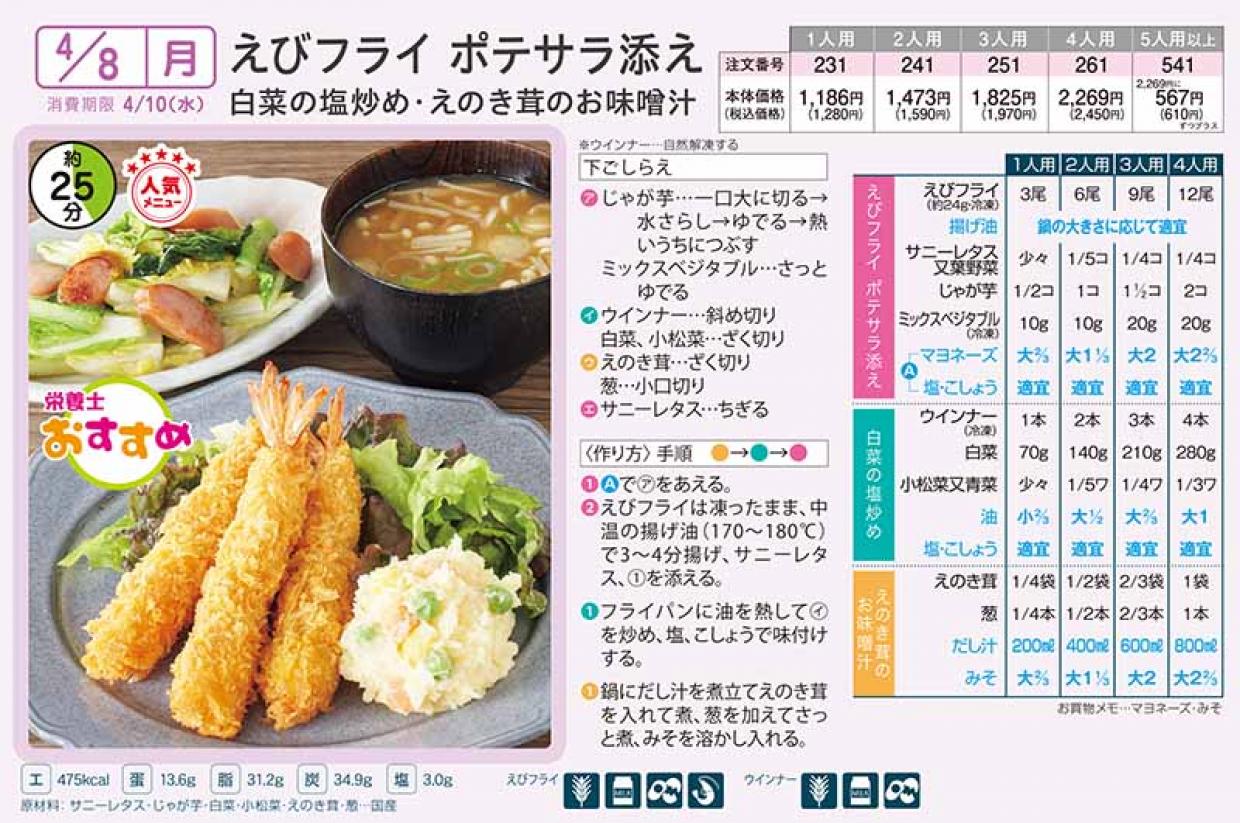 | 4 | サービスの内容 | 管理栄養士監修の献立食材・時短調理や弁当を毎日届け |